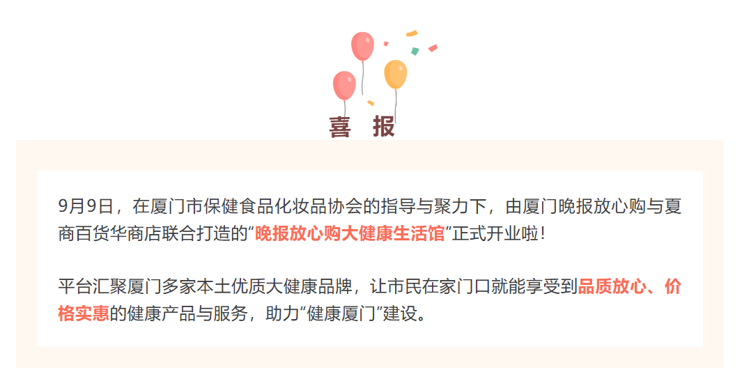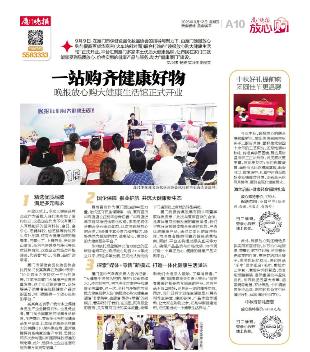 廈門晚報(bào)放心購(gòu)大健康生活館正式開(kāi)業(yè)啦!思健蜂膠等系列大健康保健食品受邀入駐